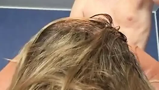 Kıvrımlı kızıl saçlı müşterilere prostat masajı yapıyor