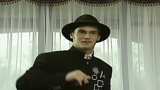 Mükemmel memeli güzel klasik genç kız için çifte penetrasyon ve ağzına boşalma
